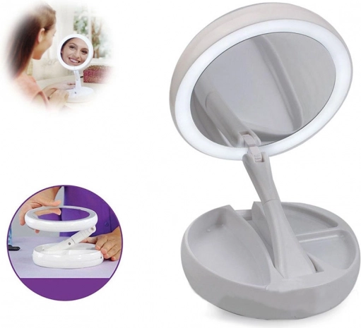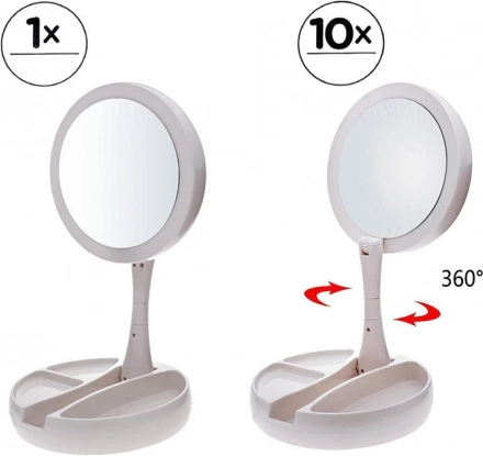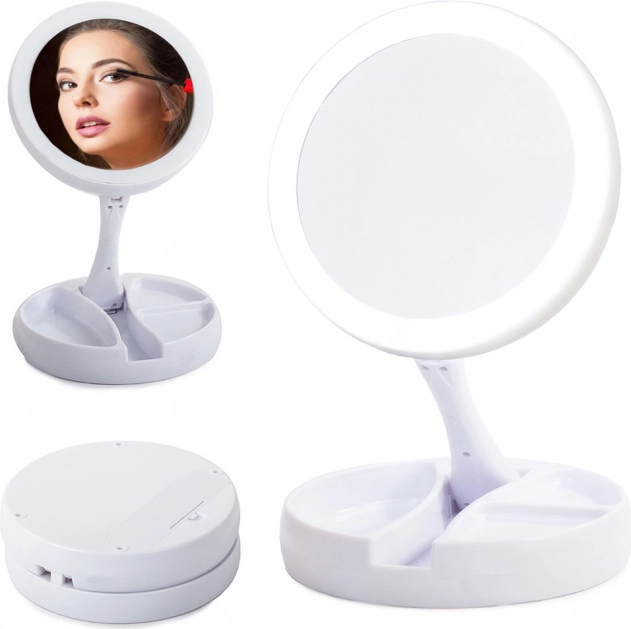 Une face offre un reflet naturel, l’autre un grossissement jusqu’à 10× pour un maquillage et des soins détaillés – idéal pour l’eyeliner, les sourcils et les lentilles.