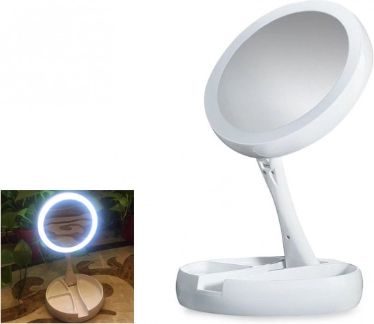 Le socle stable avec rangements pour petits accessoires garde pinceaux, pince à épiler ou rouge à lèvres à portée de main. La construction avec inclinaison/rotation à 180° facilite le réglage de l’angle idéal. Alimentation flexible : piles 4× AA ou via Micro USB 5 V – parfait pour la coiffeuse à domicile comme en voyage.