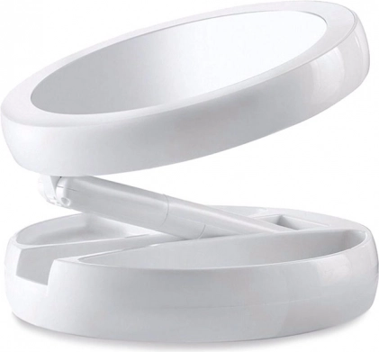 Élégant miroir rond avec éclairage LED assurant une lumière homogène et un reflet précis, sans ombres. Grâce à sa double face, vous disposez d’une vue standard 1× et d’un grossissement 10× pour des retouches précises des sourcils, de l’eyeliner ou la pose de lentilles. Le bouton tactile sur le socle permet d’allumer l’éclairage rapidement.
