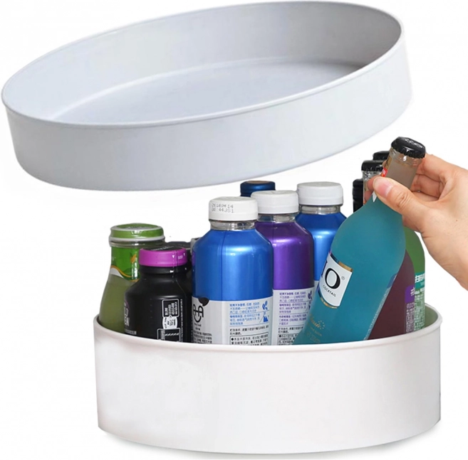 Universel, l’organisateur rotatif est l’allié idéal pour toute cuisine ou salle de bain. Le plateau compact avec une base rotative stable permet de trouver et de sortir facilement l’article recherché sans fouiller. Son design minimaliste en plastique résistant s’intègre dans la plupart des intérieurs et aide à conserver la propreté et la clarté sur les étagères comme sur le plan de travail.
