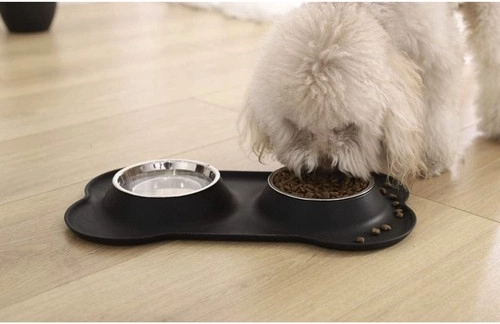 Pratique double gamelle pour chiens et chats combinant deux bols en acier inoxydable et un tapis en silicone antidérapant en forme d’os. Offre de la place pour la nourriture et l’eau fraîche, retient gouttes et miettes et garde l’espace de repas propre et hygiénique. Grâce à sa construction stable, la gamelle ne glisse pas et se nettoie facilement.