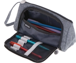 Trousse universelle 3-en-1 en élégant coloris gris, faisant office de trousse scolaire, trousse de maquillage et organiseur de voyage. Elle offre deux compartiments, des poches pratiques et des passants élastiques pour une organisation parfaite. Grâce à son matériau résistant, son zip et sa dragonne, elle est idéale pour l’école, les voyages et le bureau.