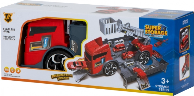 Transportez les petites voitures jusqu’au lieu d’intervention grâce à ce camion de pompiers. Le transporteur intégré permet de transporter deux modèles de petites voitures incluses, qui peuvent être facilement chargées à l’aide de rampes. Les enfants peuvent également s’amuser à déplacer la barre d’échelle coulissante, ce qui ajoute un niveau supplémentaire d’interactivité.