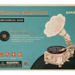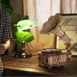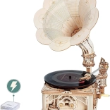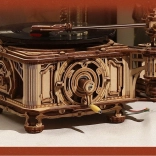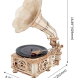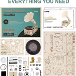 Le paquet comprend un disque vinyle avec trois mélodies : The Merry Gent (0:47), Memory Of A Dance (2:07), et The Giant Killers (1:27). Vous pouvez lire des disques vinyle 7" et 10". Les pièces sont découpées au laser à partir de contreplaqué et l'assemblage suit les instructions fournies.