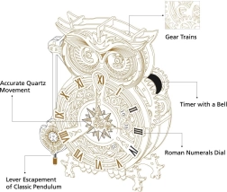 Forme de chouette avec des éléments mécaniques détaillés, suscitant admiration et ajoutant une touche d'élégance à l'intérieur.