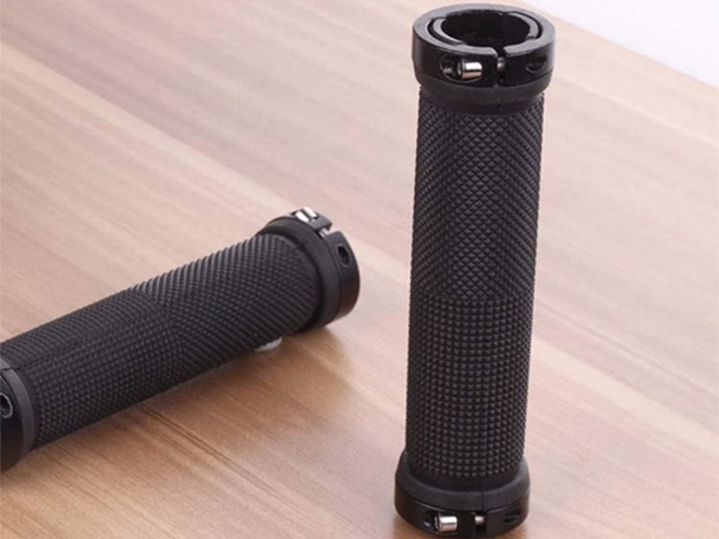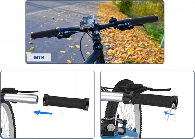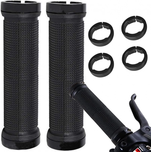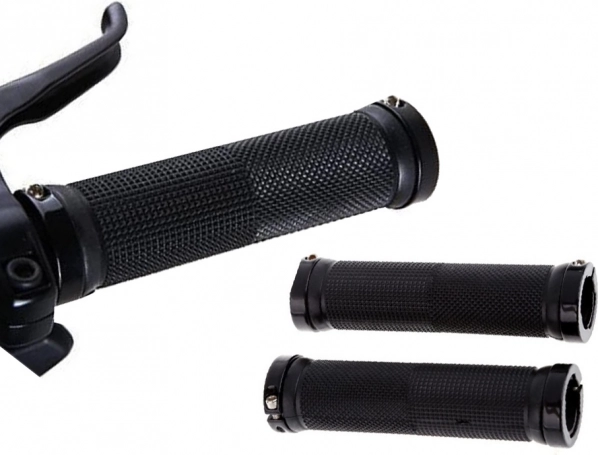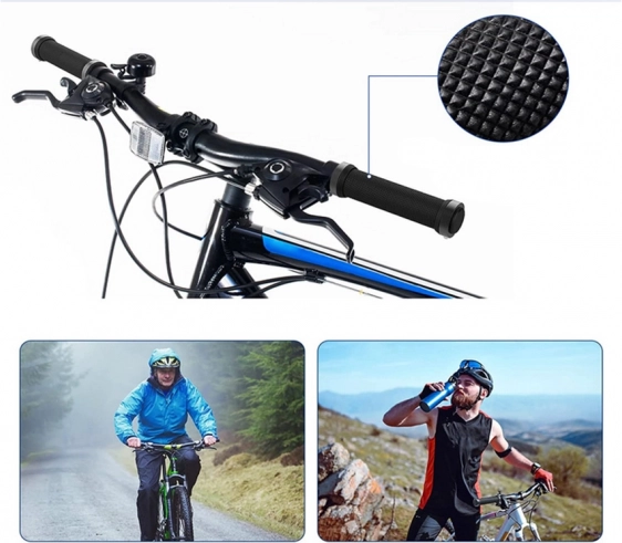 Poignées de vélo en caoutchouc fabriquées en caoutchouc antidérapant de qualité offrant douceur et absorption des chocs. Embouts métalliques avec vis garantissent une fixation solide et éliminent le risque de glissement des poignées pendant le trajet.