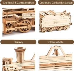 Profitez du plaisir et de la créativité avec le modèle en bois 3D Prime Steam Express. Ce train historique date de 1860 et fait partie de la série ROBOTIME ROKR Model Vehicles Series. Toutes les pièces sont soigneusement découpées au laser dans un contreplaqué de tilleul de 2 mm d'épaisseur. Aucun besoin de colle pour assembler et le modèle comporte des détails réalistes, tels qu'un sifflet à vapeur, des roues à essieu et un tender détachable.