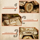 Un modèle en bois réaliste de jeep militaire des années 40, idéal pour les amateurs de maquettes. Ce puzzle 3D en bois avec 369 pièces offre de véritables détails et un défi pour les passionnés de technologie.