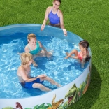 Créez pour vos enfants un univers aquatique avec un motif de dinosaures coloré qui les séduira au premier regard. La structure autoportante permet un montage rapide et une bonne stabilité pendant les jeux. Des matériaux de qualité garantissent une longue durée de vie et des plaisirs aquatiques en toute sécurité.