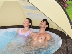 Cet abri pour spas vous offre une excellente protection et intimité pendant votre moment de détente dans le jardin. Avec des fenêtres ventilées assurant un flux d'air libre et un assemblage facile, il est l'accessoire idéal pour tous les types de spas Bestway, sauf les modèles St. Lucia et Vancouver.