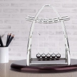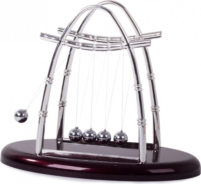 La pendule de Newton est une décoration intemporelle et un outil intelligent pour démontrer la loi de conservation de l’énergie et de la quantité de mouvement. Il suffit de tirer une bille et d’observer comment l’énergie se transmet à travers les billes centrales jusqu’à l’extrémité opposée – un effet visuel saisissant qui amuse et instruit.