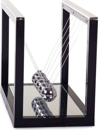 Il suffit de lâcher une bille et d’observer comment la quantité de mouvement et l’énergie se transmettent à l’autre extrémité. À la fois ludique, instructif et relaxant – parfait au bureau comme à la maison.