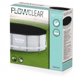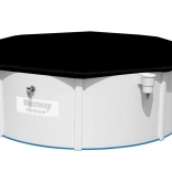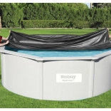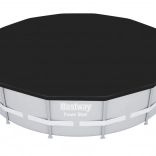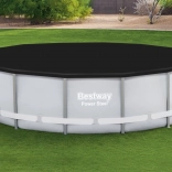 Bâche universelle Bestway pour piscines d'un diamètre de 396 cm, adaptée aux piscines à armature et autoportantes. Protège contre les insectes, les oiseaux, les feuilles et la pluie.