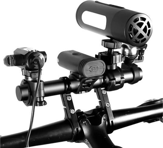 Le support offre un espace supplémentaire sur le guidon, facilitant l'installation de plusieurs appareils comme des lumières ou un GPS.
