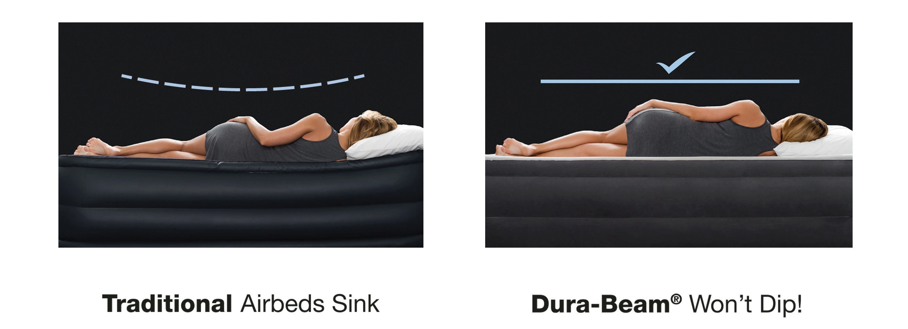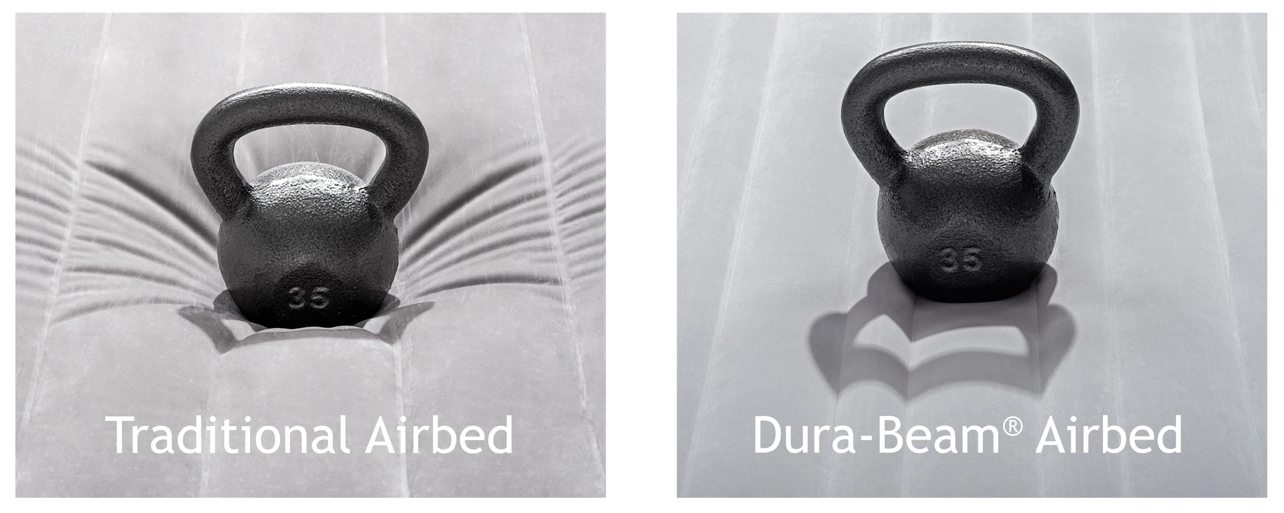 Profitez du confort d’un matelas gonflable ferme et agréable, idéal pour les invités comme pour les vacances. Grâce à la technologie Fiber-Tech avec fibres en polyester, le matelas est plus rigide, plus durable et répartit uniformément le poids sur toute la surface. La surface ondulée et la structure à chambres aident à maintenir la position correcte de la colonne vertébrale et réduisent le risque de douleurs dorsales et cervicales.