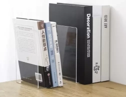 L’acrylique clair met en valeur les livres, offre un rendu épuré et ne détourne pas l’attention de l’étagère ou du bureau.