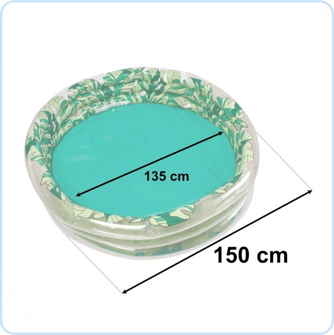 Cette belle piscine gonflable avec une graphique de feuilles vertes deviendra une superbe décoration pour votre jardin ainsi qu’un lieu de jeux inoubliables pour votre enfant. Grâce à ses dimensions — diamètre 150 cm, diamètre intérieur 135 cm — elle offre suffisamment d’espace pour plusieurs enfants.