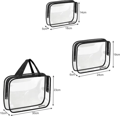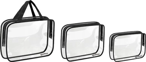 L’ensemble de 3 trousses transparentes pour cosmétiques et petits objets vous aide à garder de l’ordre dans la valise, le sac à dos et la salle de bain. Les différentes tailles permettent de répartir intelligemment maquillage, articles de toilette et flacons de voyage. Le matériau transparent accélère le contrôle de sécurité à l’aéroport et facilite la recherche de ce dont vous avez besoin.