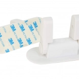 L'installation du verrou est très simple - il suffit de dégraisser la surface et de fixer le verrou à l'aide de la bande adhésive double face fournie. Pour ouvrir le verrou, il suffit d'appuyer sur les boutons des deux côtés du mécanisme, une opération facile pour les adultes mais sécuritaire pour les enfants.