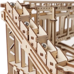 ROBOTIME ROKR Marble Run Squad est un puzzle 3D en bois détaillé qui prend vie, une fois assemblé, grâce à une mécanique intelligente. Actionnez la manivelle et regardez les billes d’acier filer sur des pistes droites et relevées, franchir des trappes et monter grâce à l’élévateur. Le modèle se distingue par une découpe laser de haute précision, une construction stable et des matériaux sûrs et non toxiques.