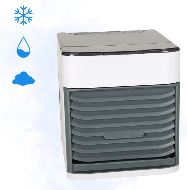 Vivez un rafraîchissement instantané avec notre mini climatiseur de table USB portable. Il suffit de le connecter avec le câble USB fourni et de profiter d'un air plus frais en quelques instants. Grâce à son design minimaliste, l'appareil s'intègre facilement dans n'importe quel espace et offre un refroidissement efficace sans installation coûteuse.