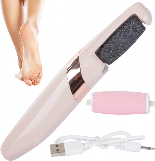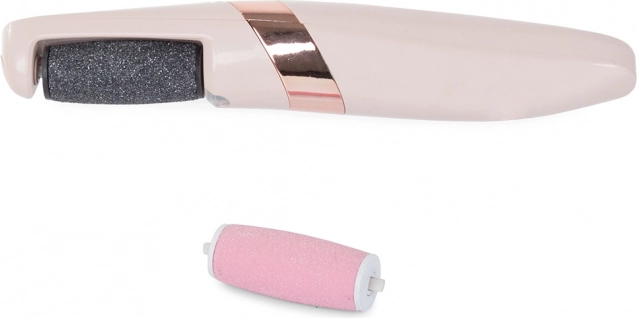 Équipée de rouleaux abrasifs uniques capables de tourner à 360° pour éliminer efficacement la peau durcie.