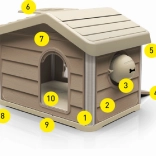 - Distributeur interactif de croquettes (inclus), en option : rideau transparent pour l’entrée, isolant, rampe, toboggan, tunnel de connexion, parois/planchers de rechange