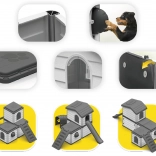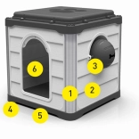 Grâce au système modulaire, elle se compose de 6 éléments principaux : une paroi avec entrée, une paroi avec distributeur de nourriture, deux parois pleines et deux éléments plancher/toit avec rainures de drainage pour un nettoyage facile. L’assemblage est rapide, sans outils, ce qui en fait une solution idéale à la maison comme en voyage.