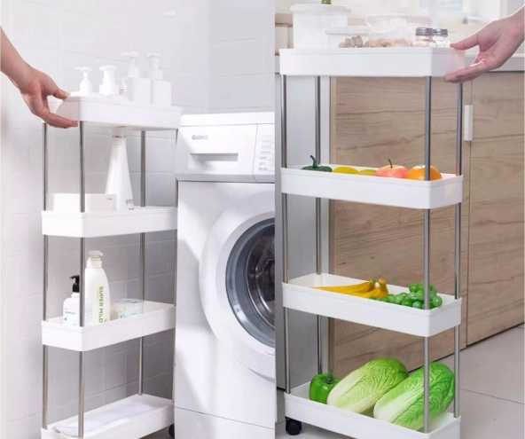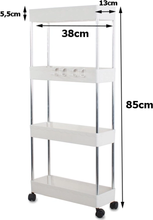 L'armoire est conçue pour une utilisation efficace de l'espace dans votre foyer. Les quatre étagères offrent ample espace de stockage pour les articles de toilette dans la salle de bain ou les provisions dans la cuisine. Grâce aux roues, elle est facilement déplaçable et multifonctionnelle, vous pouvez donc adapter son utilisation selon vos besoins.