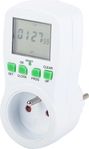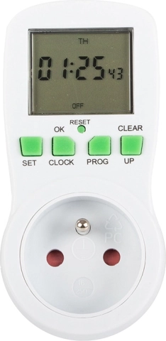 Pratique minuteur numérique sur prise avec un grand écran LCD permettant de mettre sous/hors tension automatiquement vos appareils selon le programme défini. Économise l’énergie, augmente la sécurité et le confort, offre jusqu’à 16 programmes, un mode d’activation aléatoire pour simuler une présence et une fonction compte à rebours. Charge maximale 3680 W / 16 A et réglage précis de l’heure au format 24/12 h.