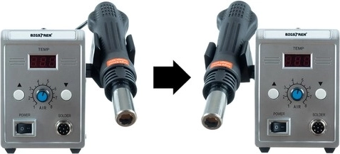 Ce dispositif est utile pour les réparations électroniques, l'enlèvement de peintures, le moulage de pièces en plastique et d'autres tâches nécessitant des technologies à air chaud.