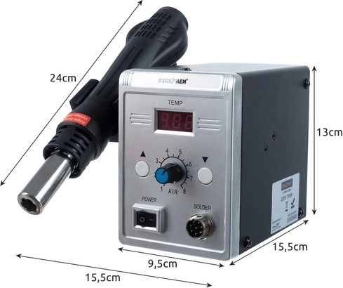 La station est hautement efficace pour le soudage de divers composants électroniques ou le retrait de peintures. Elle est également idéale pour la torsion de tubes en plastique, le démontage de plastiques et d'autres projets nécessitant un flux concentré d'air chaud. De plus, elle dispose d'un mode modifiant, où après avoir été posée sur un support, elle se refroidit automatiquement, et lors du levage, elle revient à la température définie.