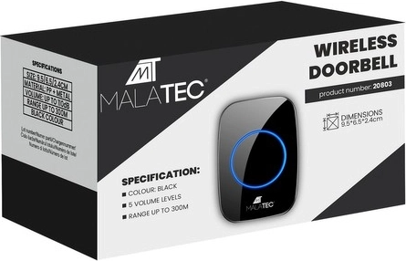 Sonnette sans fil Malatec offre jusqu'à 60 mélodies, un réglage du volume à 5 niveaux jusqu'à 110 dB et une haute résistance aux conditions météorologiques défavorables, ce qui en fait un complément idéal pour toute maison.