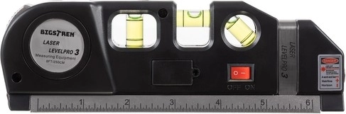 Niveau laser de la marque Bigstren avec un mètre intégré de 250 cm est l'outil idéal pour des mesures précises et l'alignement des lignes. Il permet la détermination simultanée des plans horizontaux et verticaux et convient à un usage professionnel et domestique.