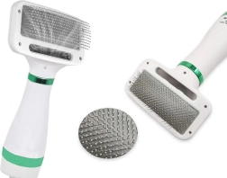 Pratique, la brosse séchante 2-en-1 pour animaux de compagnie combine un sèche-cheveux et une brosse en un seul appareil. Ses fines pointes métalliques démêlent en douceur le pelage sans irriter la peau, tandis que deux modes de basse et haute température permettent un séchage rapide après le bain ou la pluie. Sa forme ergonomique et son câble suffisamment long facilitent la manipulation pour les petites comme pour les grandes races.