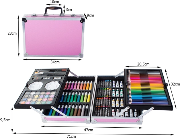 Ensemble de création 145 pièces est idéal pour tous les peintres passionnés. Contient une large gamme de couleurs et d'outils qui facilitent la création d'œuvres créatives. Avec cette valise immédiatement utilisable, vous ne chercherez plus jamais les accessoires nécessaires.
