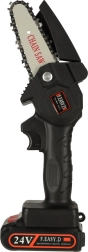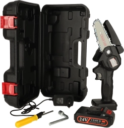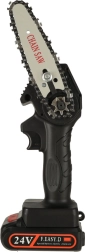 Légère et facilement transportable, mini scie à chaîne à batterie. Idéale pour le travail en hauteur ou dans les endroits où une scie classique est peu pratique. Parfaite pour le jardin, le verger, l'atelier ou les travaux dans le chalet.