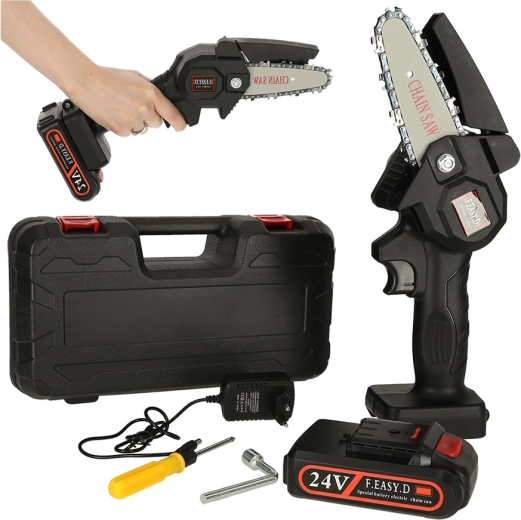 Mini scie à chaîne à batterie portable, un excellent outil pour tout jardinier ou bricoleur. Grâce à son poids léger et à ses dimensions compactes, elle est facile à utiliser et permet un travail efficace même dans les endroits difficiles d'accès.