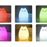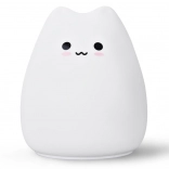 Adorable veilleuse pour enfants en forme de chat en silicone souple, créant une atmosphère chaleureuse et apaisante pour s’endormir facilement. Propose une lumière blanc chaud et une transition fluide de couleurs RGB, se contrôle par toucher/tapotement et, grâce à ses dimensions compactes, trouve sa place sur toute table de nuit.