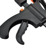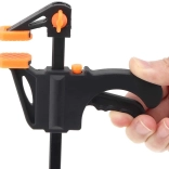 Ce serre-joint à une main, léger et robuste, est idéal pour la menuiserie, le montage et les projets DIY. Le système coulissant à dégagement rapide permet une manipulation confortable d’une seule main, tandis que la gâchette caoutchoutée aide à doser en douceur la pression de serrage. En réajustant la mâchoire supérieure, vous passez facilement en mode écarteur.