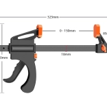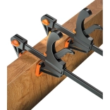 Serre-joint pratique à dégagement rapide avec ouverture des mâchoires de 0 à 205 mm pour un serrage précis et rapide ainsi que des travaux d’écartement. Grâce à la commande à une main et à une gâchette fiable, il assure une prise sûre, un réglage rapide et une protection du matériau grâce aux capuchons en plastique.