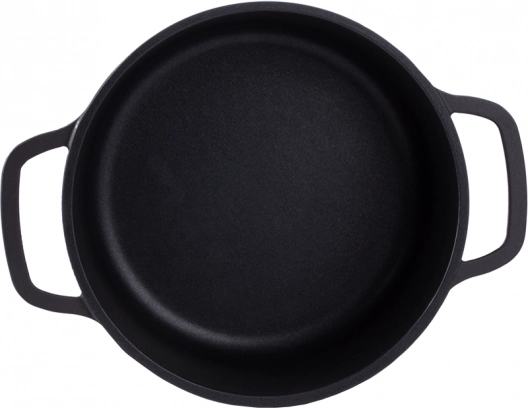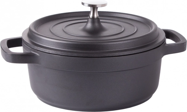 Faitout pratique d’un volume de 2,2 l, en fonte d’aluminium robuste avec revêtement antiadhésif pour une cuisson et une rôtisserie faciles. Compatible avec tous les types de plaques, y compris l’induction, ainsi que au four. Offre une montée en température rapide, une répartition homogène de la chaleur et des poignées ergonomiques sécurisées.