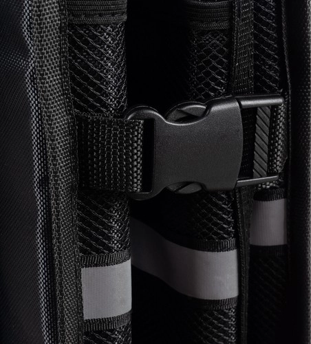 Des poignées métalliques robustes transforment l’organisateur en sac pratique. Sans remballer, vous sortez tout d’un coup et transportez confortablement; les éléments réfléchissants augmentent la sécurité.