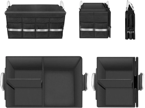 Des matériaux de qualité et des détails bien pensés garantissent une longue durée de vie. Le tissu Oxford 600 résistant, les renforts en MDF et les poignées métalliques supportent une utilisation quotidienne. Quatre poches avant en filet et une poche latérale à velcro accueillent les petits objets, les éléments réfléchissants améliorent la visibilité. Une fois plié, il prend un minimum de place – idéal pour toute voiture, SUV ou fourgon.