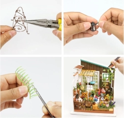 Cette miniature DIY soignée transformera votre temps libre en une expérience créative agréable. Le kit contient des pièces prédécoupées en contreplaqué, des impressions papier, des éléments textiles et métalliques, des peintures et de la colle. Grâce à l’éclairage LED, chaque détail ressort et le modèle fini devient une décoration élégante pour une étagère ou un bureau.