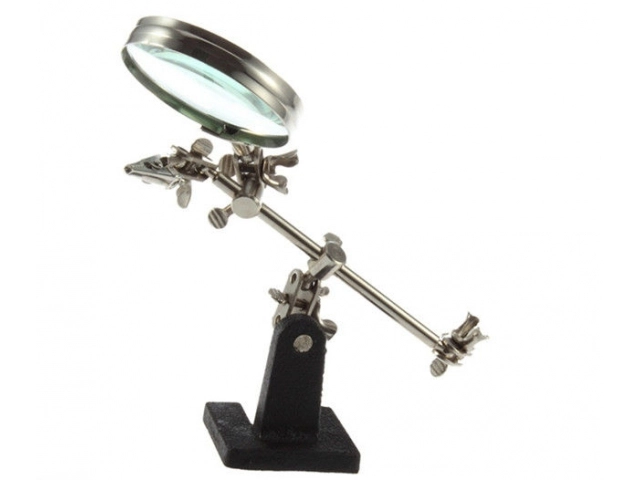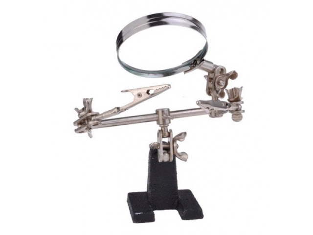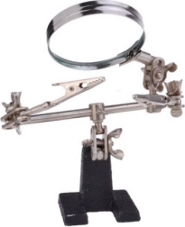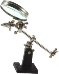 Troisième main professionnelle avec loupe grossissante 2,5x 60 mm, idéale pour les bricoleurs. Parfaite pour les bijoutiers, numismates, techniciens en électronique et horlogers, elle offre une solution efficace pour les travaux fins en électronique.