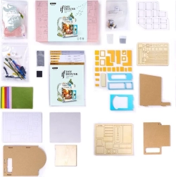 Le coffret comprend les pièces de construction, de la colle, des peintures, un pinceau et un mode d’emploi détaillé. Tous les outils dont vous avez besoin, à l’exception des ciseaux, se trouvent dans la boîte pour rendre l’assemblage aussi simple que possible.