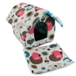 Vous pouvez facilement la transporter grâce à ses dimensions compactes et à son toit entièrement démontable, fixé par une fermeture éclair. Elle a une insert amovible pour un nettoyage facile et est livrée dans des couleurs qui donneront du style à votre maison.