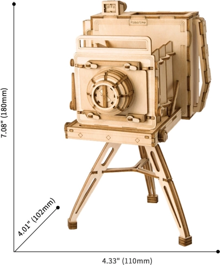 Le puzzle 3D en bois Appareil photo historique vous transporte dans le passé, tout en se transformant en un modèle détaillé d'une caméra vintage. Découpé au laser pour plus de précision et sans besoin de colle, il devient une activité relaxante pour tous.
