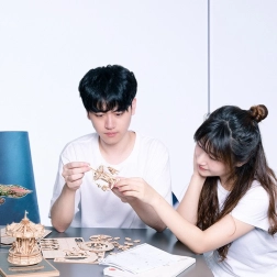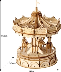 Découvrez la magie du savoir-faire traditionnel avec le modèle 3D en bois de carrousel. Ce set offre une expérience complète du début à la fin. Des matériaux de qualité et sûrs garantissent un montage agréable, et le produit fini devient une décoration impressionnante.